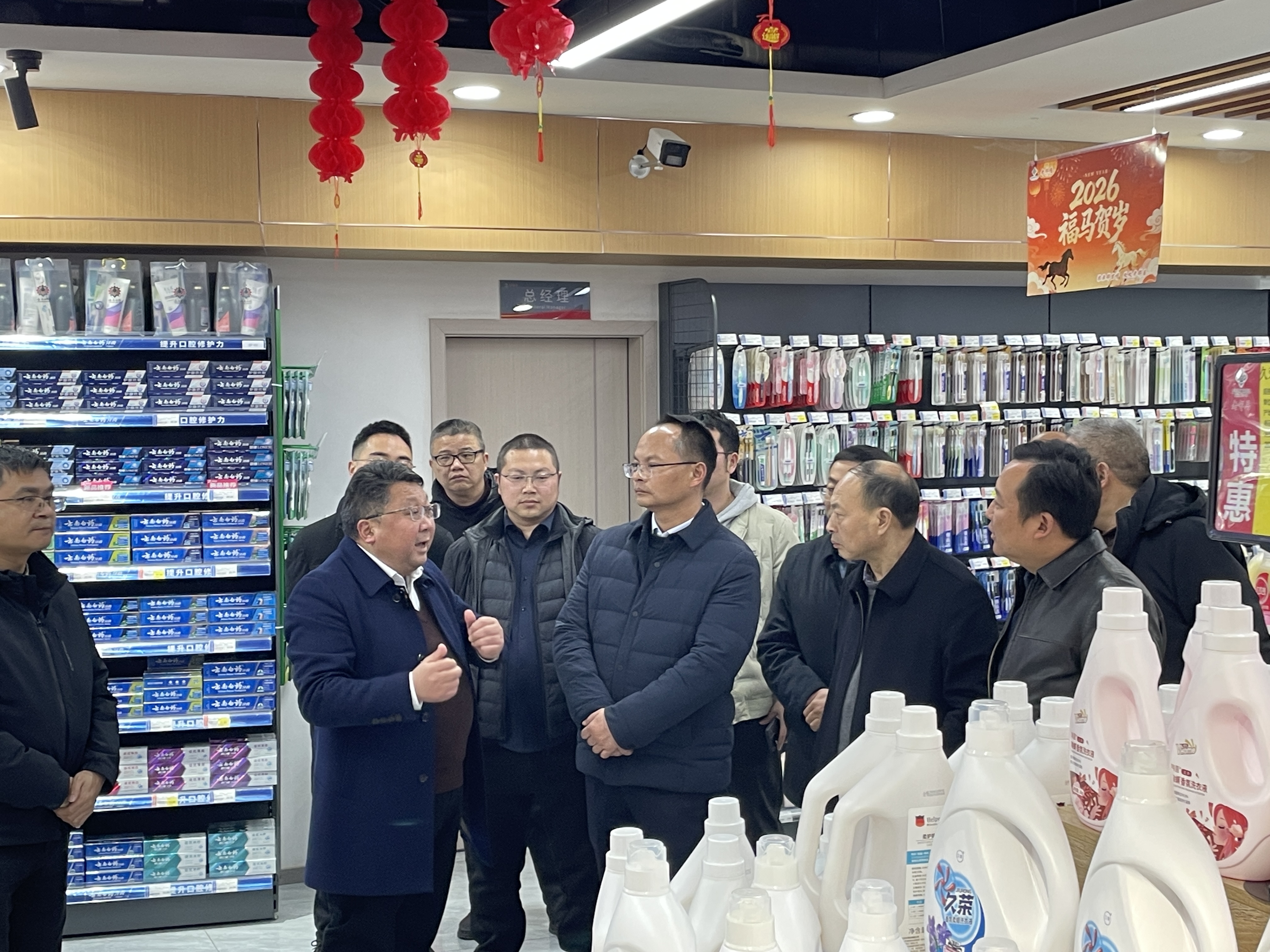 在老鄰居·平昌供銷生活超市,考察組聽取了社有企業(yè)負(fù)責(zé)人對(duì)供銷超市經(jīng)營模式、商品結(jié)構(gòu)、銷售情況的介紹,并就社有企業(yè)融入城鄉(xiāng)便民服務(wù)、拓展消費(fèi)市場的運(yùn)營模式進(jìn)行了探討。
